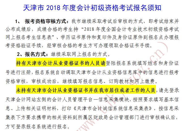 天津市2018年度會(huì)計(jì)初級(jí)資格考試報(bào)名須知