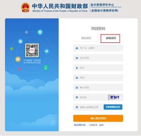 2、通過郵箱找回:輸入本人用戶名(郵箱)、證件號、姓名、驗證碼,點擊獲取郵箱驗證碼,接收郵件,輸入正確的郵箱驗證碼,然后修改本人密碼。
