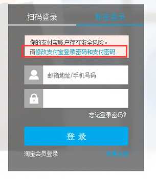如果支付寶掃描二維碼后,頁面提示“您的支付寶賬戶存在安全風(fēng)險,請修改支付寶登錄密碼和支付密碼”,請點擊“修改支付寶登錄密碼和支付密碼”鏈接,按提示完成密碼修改,然后重新登錄進行支付寶實名認證: