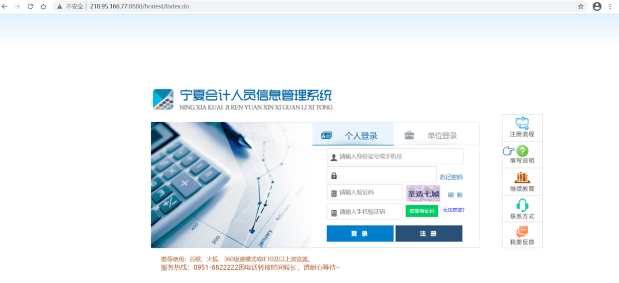 一、登錄寧夏會計人員信息管理系統(tǒng),登錄地址如下: http://222.75.71.233:8888/honest/Index.do,如圖