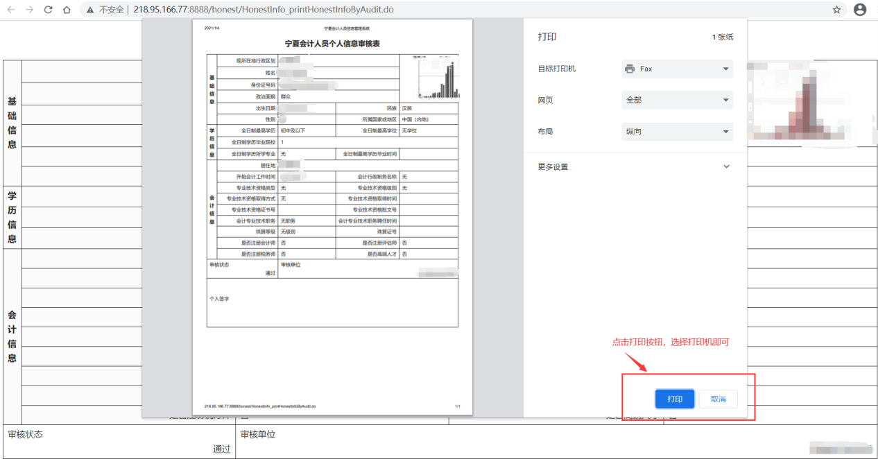 三、點擊進(jìn)入之后,選擇打印按鈕即可,如下圖