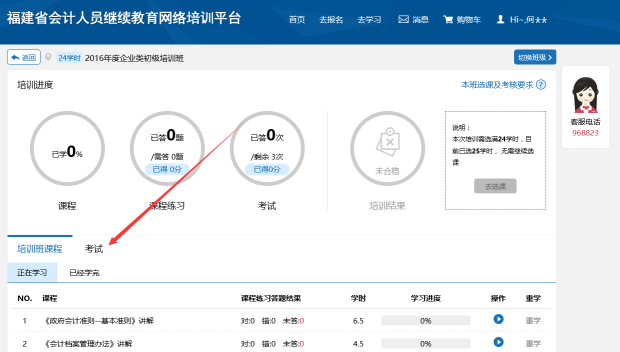 學(xué)員進(jìn)入學(xué)習(xí)中心,第一步查看考核要求。