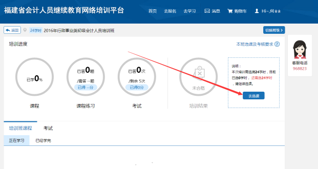 第二步增加學(xué)習(xí)課程,學(xué)員點擊右側(cè)頁面的“去選課”按鈕,系統(tǒng)會跳轉(zhuǎn)到課程列表頁面供學(xué)員選擇課程。