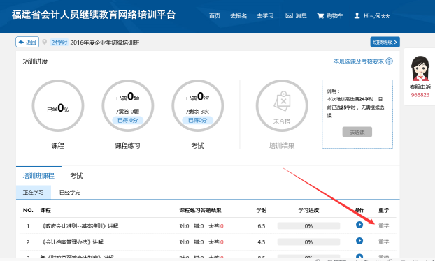 重學(xué)全部課程:學(xué)員在參加考試后(考試有2次補(bǔ)考機(jī)會)并且總成績不合格的可在培訓(xùn)結(jié)果處點擊“重學(xué)”。重新學(xué)習(xí)課程并考試。