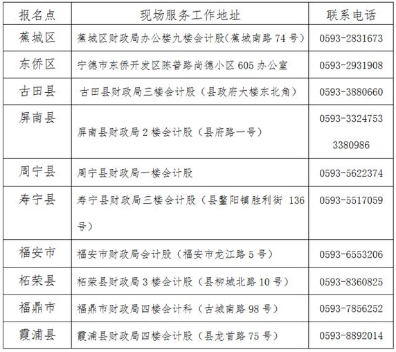 寧德考區(qū)各報名點現(xiàn)場服務(wù)工作地址及聯(lián)系電話: