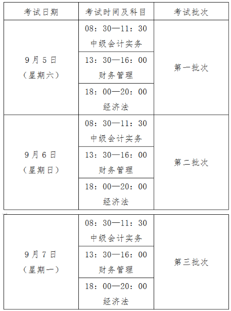 2、考試時間、地點。中級考試定于2020年9月5-7日舉行,共3個批次。其中《中級會計實務(wù)》科目考試時長為3小時,《財務(wù)管理》科目考試時長為2.5小時,《經(jīng)濟法》科目考試時長為2小時?荚嚨攸c:寧德市中心城區(qū)(具體地點以準考證上信息為準)。
