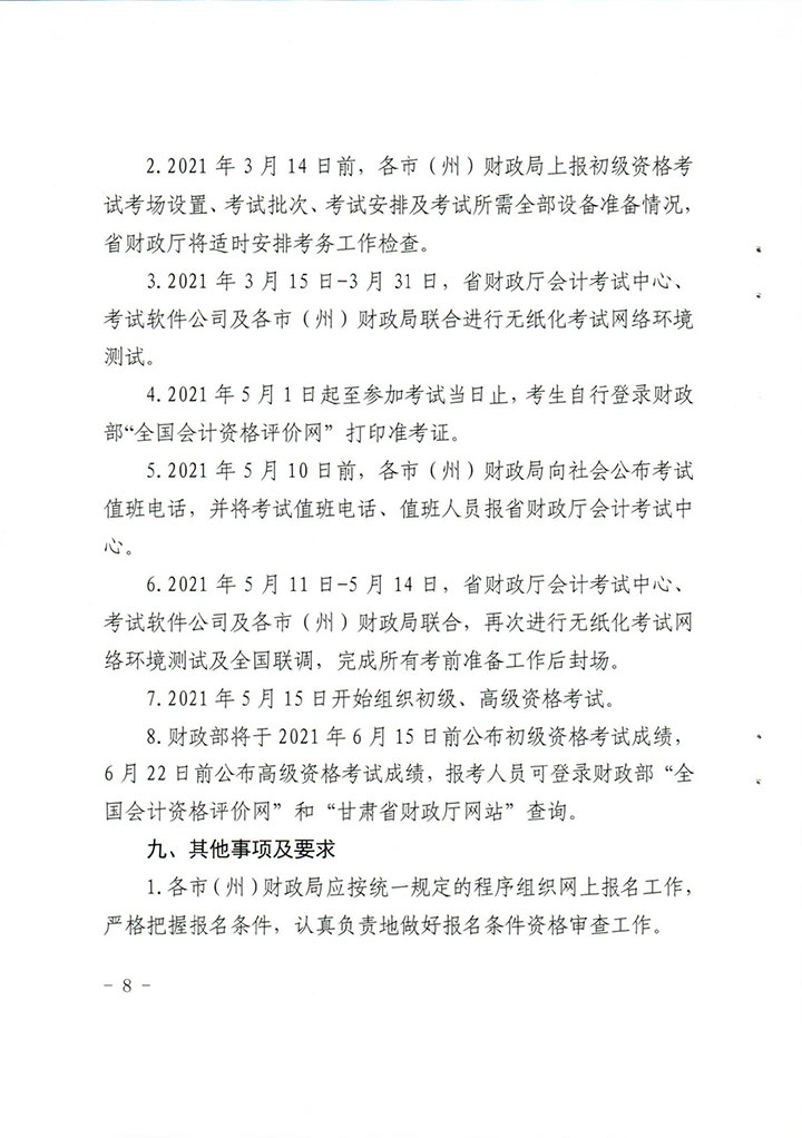 根據(jù)財(cái)政部、人力資源和社會(huì)保障部統(tǒng)一安排,2021年度全國(guó)會(huì)計(jì)專業(yè)技術(shù)初級(jí)、高級(jí)資格考試(以下簡(jiǎn)稱初級(jí)、高級(jí)資格 考試)于2021年5月舉行,全部采用無(wú)紙化方式。為做好我省2021年度初級(jí)、高級(jí)資格考試考務(wù)工作,全文如下: