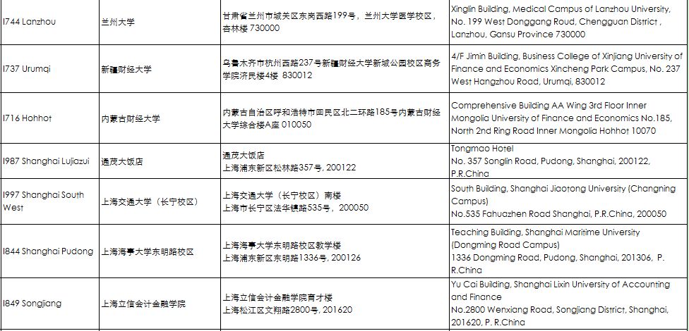 考點(diǎn)地址匯總