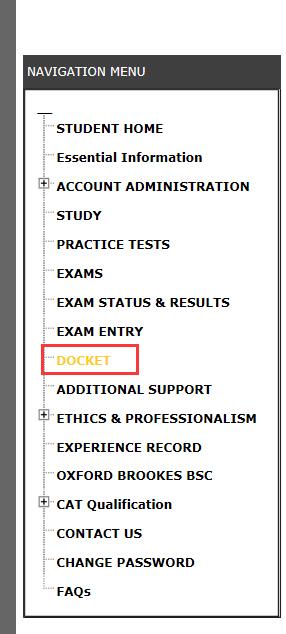 2、 輸入準(zhǔn)考證號(hào)及密碼進(jìn)入后,在左側(cè)找到“DOCKET”
