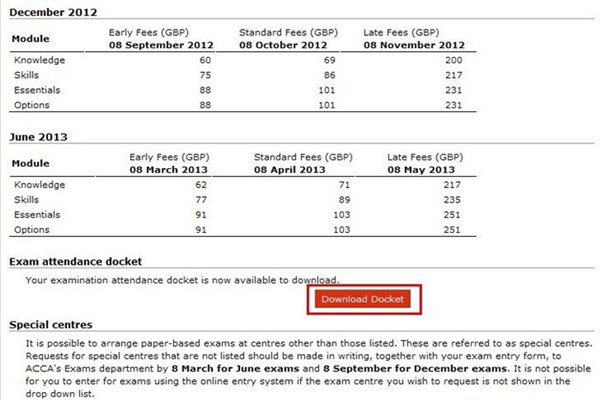 3、進(jìn)入考試信息頁面,在Exam attendance docket中點(diǎn)擊Download Docket,確認(rèn)準(zhǔn)考證信息無誤后,下載并打印PDF準(zhǔn)考證即可:然后點(diǎn)擊左側(cè)的EXAM ENTRY: