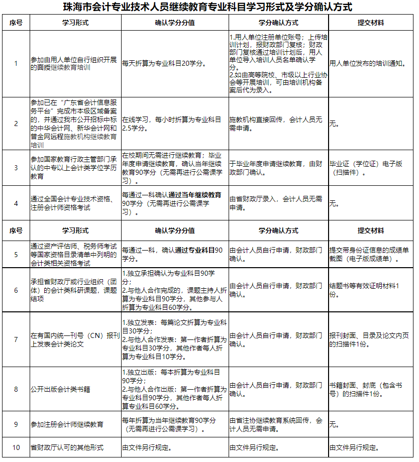 附件:珠海市會計專業(yè)技術(shù)人員繼續(xù)教育學(xué)習(xí)形式及學(xué)分確認(rèn)方式