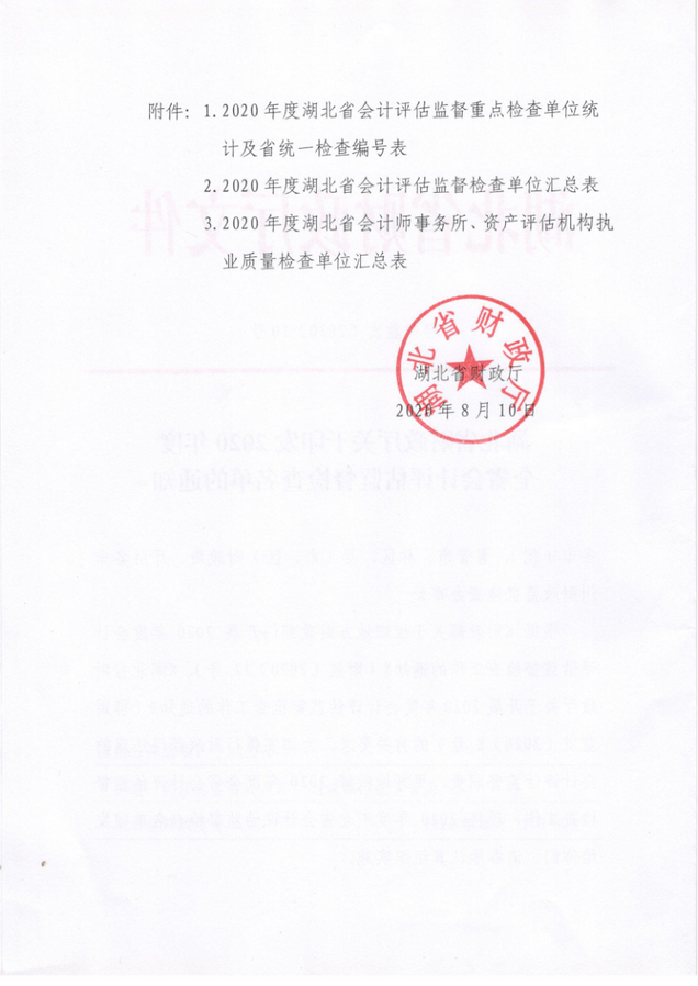 湖北省財(cái)政廳關(guān)于印發(fā)2020年度全省會(huì)計(jì)評(píng)估監(jiān)督檢查名單的通知