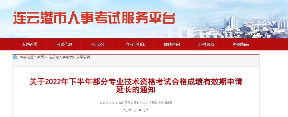 關(guān)于2022年下半年部分專業(yè)技術(shù)資格考試合格成績有效期申請延長的通知