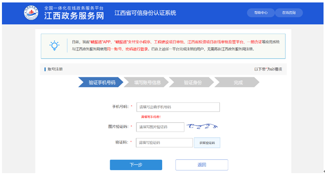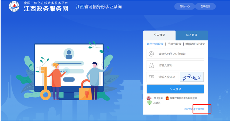 1、 已有江西省政務(wù)服務(wù)網(wǎng)或江西省可信身份認(rèn)證系統(tǒng)賬戶的用戶可選擇賬號密碼登錄或者通過手機(jī)號發(fā)送驗證碼進(jìn)行登錄