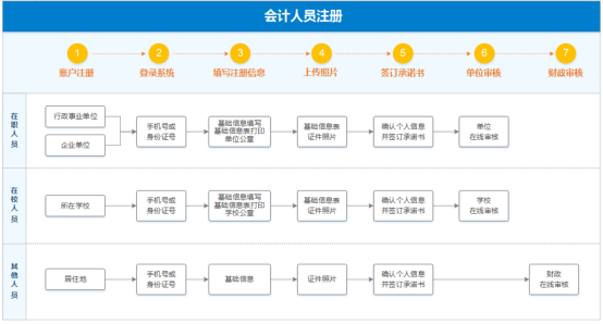 會(huì)計(jì)人員自行登錄寧夏回族自治區(qū)財(cái)政廳網(wǎng)站“寧夏會(huì)計(jì)人員信息管理系統(tǒng)”進(jìn)行注冊(cè)采集、填報(bào)個(gè)人信息(上傳個(gè)人相關(guān)證件照)并提交所在單位(在崗人員由所在單位審核;在校生由所在學(xué)校審核;其他人員由會(huì)計(jì)管理機(jī)構(gòu)直接審核),再由單位財(cái)務(wù)負(fù)責(zé)人將注冊(cè)信息提交到當(dāng)?shù)貢?huì)計(jì)管理機(jī)構(gòu)審核確認(rèn)。