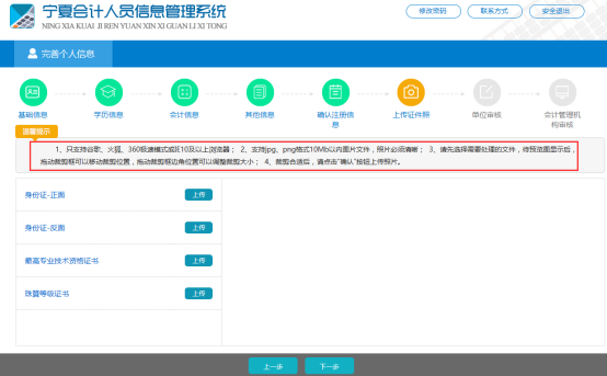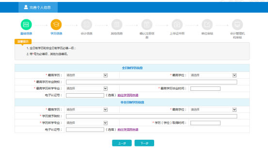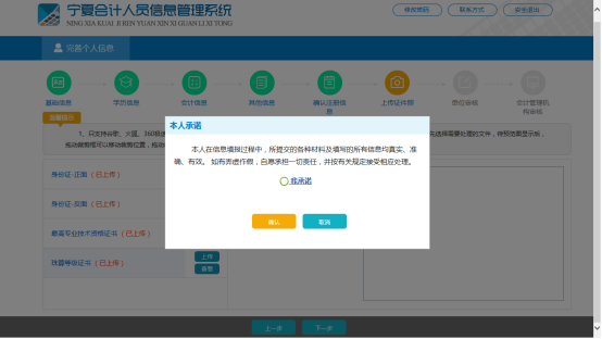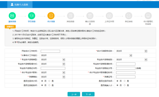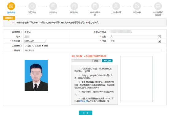 1.會(huì)計(jì)人員在填寫個(gè)人基本信息過程中,同時(shí)在網(wǎng)上提交上傳本人的相關(guān)資料掃描件或照片,主要包括: