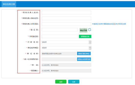 D.單位用戶登錄時(shí)使用財(cái)務(wù)負(fù)責(zé)人身份證號(hào)或手機(jī)號(hào)登錄,手機(jī)號(hào)碼請(qǐng)使用自治區(qū)內(nèi)號(hào)碼,填寫錯(cuò)誤將影響系統(tǒng)使用。