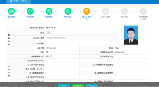 填寫的基礎(chǔ)信息和上傳的照片查看確認(rèn),確保信息準(zhǔn)確無誤,點(diǎn)擊確認(rèn)。如圖