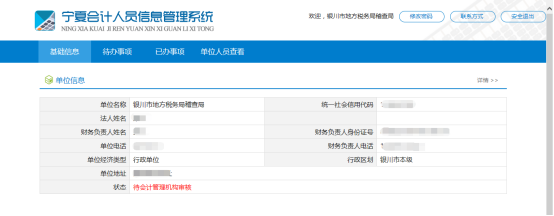 在待辦事項(xiàng)中審核本單位會(huì)計(jì)人員的注冊(cè)信息。