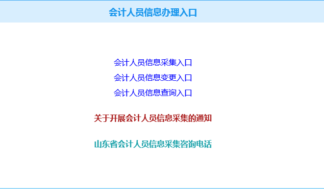 (一)會計人員登陸山東省財政廳網(wǎng)站(http://czt.shandong.gov.cn/),點擊右下角“山東會計管理”專題頁面,“進入“會計人員信息采集”入口,根據(jù)說明和提示注冊并填報相關(guān)信息。