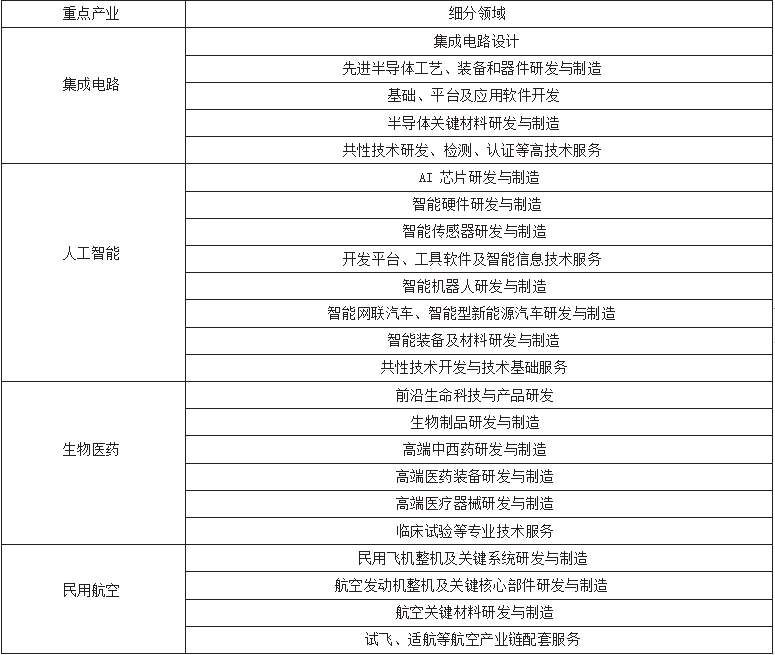 新片區(qū)集成電路、人工智能、生物醫(yī)藥、民用航空