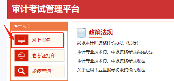 1、進(jìn)入審計(jì)考試管理平臺(tái),點(diǎn)擊“網(wǎng)上報(bào)名”
