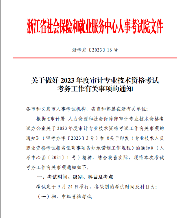 原文下載:關(guān)于做好2023年度審計(jì)專業(yè)技術(shù)資格考試考務(wù)工作的通知.pdf