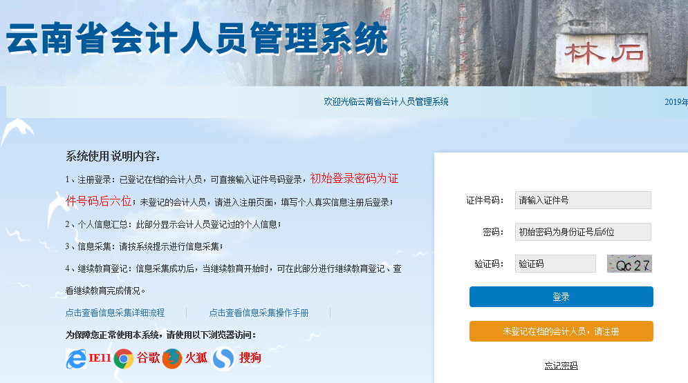 1、注冊登錄:已登記在檔的會計人員,可直接輸入證件號碼登錄,初始登錄密碼為證件號碼后六位;未登記的會計人員,請進(jìn)入注冊頁面,填寫個人真實信息注冊后登錄;