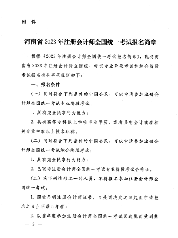 附件:河南省2023年注冊(cè)會(huì)計(jì)師全國(guó)統(tǒng)一考試報(bào)名簡(jiǎn)章