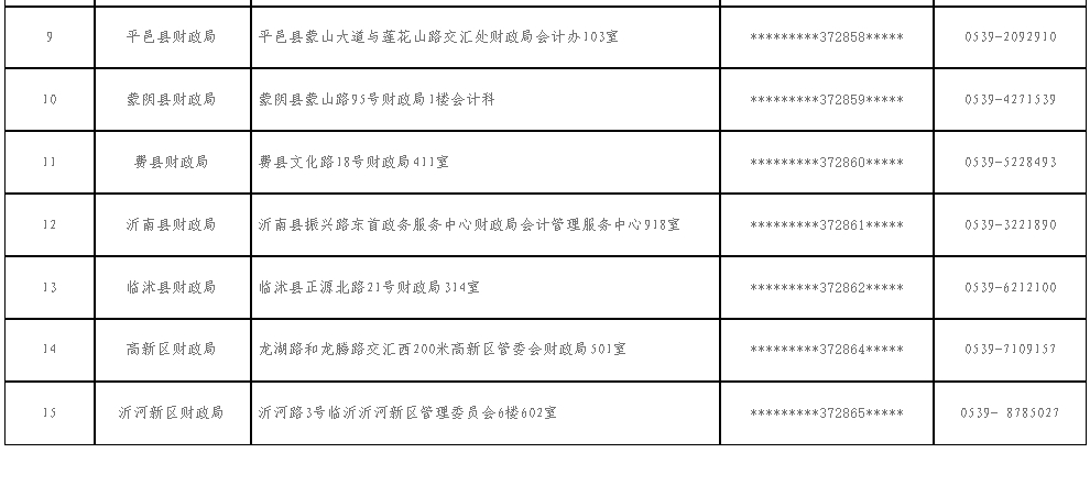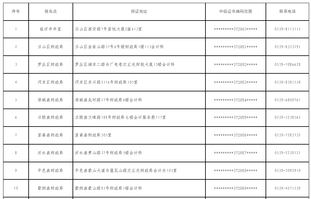 附件:臨沂市會計中級證書領(lǐng)取地點一覽表