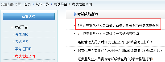 2、選擇中國證券業(yè)協(xié)會網站→從業(yè)人員→考試成績查詢→當次考試成績查詢詞條。