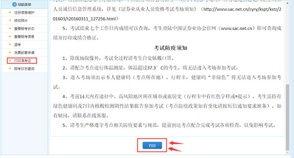 第四步:進(jìn)入網(wǎng)上報(bào)名平臺(tái)系統(tǒng),點(diǎn)擊打印準(zhǔn)考證-打印