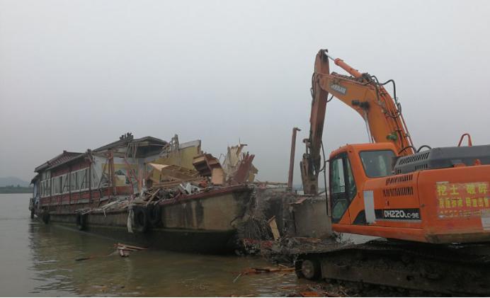 圖為對沿江船只進(jìn)行拆解和垃圾分類處理現(xiàn)場