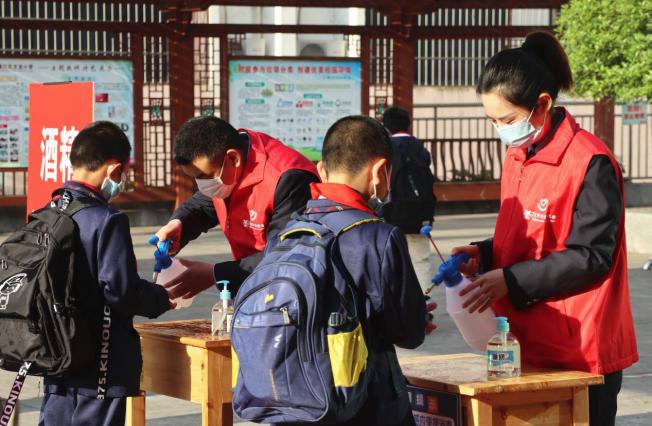 “小朋友們請這邊走,一人一個通道,間隔一米。”“噴完消毒水后,請把雙手正反兩面搓一搓。”近日,重慶中小學校實行錯峰錯時分批次有序開學復課,綦江區(qū)文龍小學迎來一道藍色風景線——“稅務青年先鋒隊”。他們幫助學校教職員工,有序引導學生入校,逐一進行體溫檢測、信息登記、酒精消毒。同時,隊員們還走進課堂,為學生送上“開學第一課”。