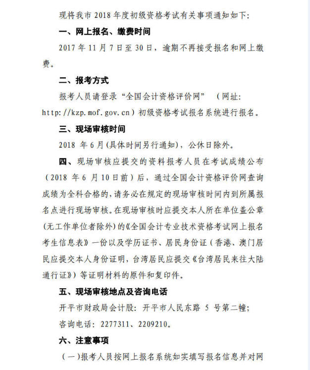 摘要:2018年廣東開平初級會計職稱考試報名時間定于2017年11月7日至30日,逾期不再接受報名和網(wǎng)上繳費?荚囉2018年5月12日開始進行,實行考后審核,具體安排另行通知。
