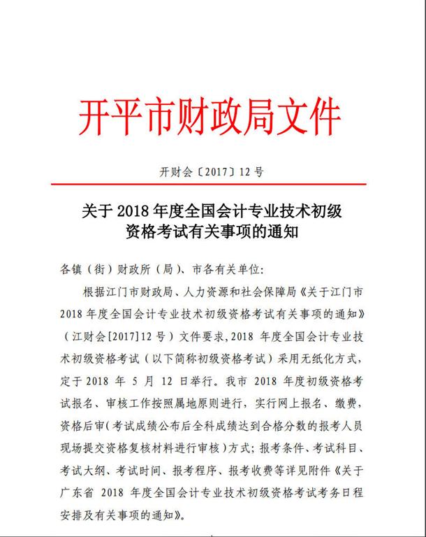 關(guān)于2018年度全國會計專業(yè)技術(shù)初級資格考試有關(guān)事項的通知