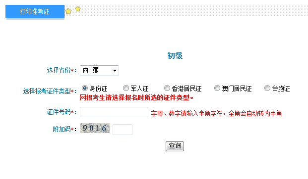西藏初級會計準(zhǔn)考證打印相關(guān)說明