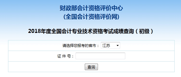 2018年江蘇初級會計職稱考試成績查詢入口已開通,南京市、無錫市、徐州市、常州市、蘇州市、南通市、連云港市、淮安市、鹽城市、揚州市、鎮(zhèn)江市、泰州市、宿遷市的初級會計職稱考生可從6月*日起登錄財政部會計資格評價中心(http://kzp.mof.gov.cn/)查詢2018年初級會計職稱考試成績。選擇自己所報考的地區(qū),輸入證件號查詢即可。