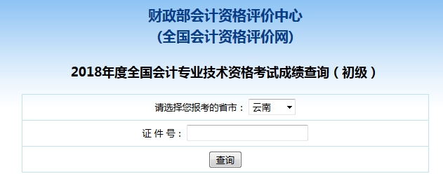 2018年云南初級會計職稱考試成績查詢時間6月8日起,云南昆明市、曲靖市、玉溪市、保山市、昭通市、麗江市、普洱市、臨滄市、楚雄州、紅河州、文山州、西雙版納州、大理州、德宏州、怒江州、迪慶州2018年初級會計職稱成績查詢入口已開通,云南初級考生可登錄財政部會計資格評價中心(http://kzp.mof.gov.cn/)查詢2018年初級會計考試成績。