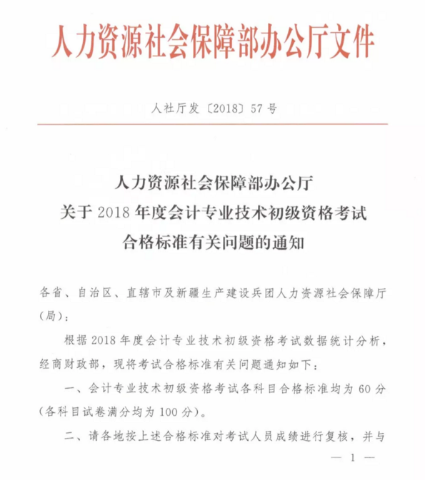 2018年初級會(huì)計(jì)職稱考試成績合格標(biāo)準(zhǔn)已公布,各科合格標(biāo)準(zhǔn)均為60分,具體文件如下: