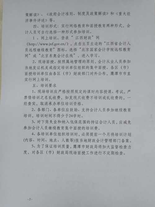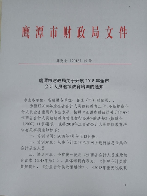 江西省鷹潭市財(cái)政局發(fā)布通知,從事會(huì)計(jì)工作已在網(wǎng)上進(jìn)行信息采集的會(huì)計(jì)從業(yè)人員,需要在2018年7月至2018年12月參加會(huì)計(jì)人員繼續(xù)教育培訓(xùn)。