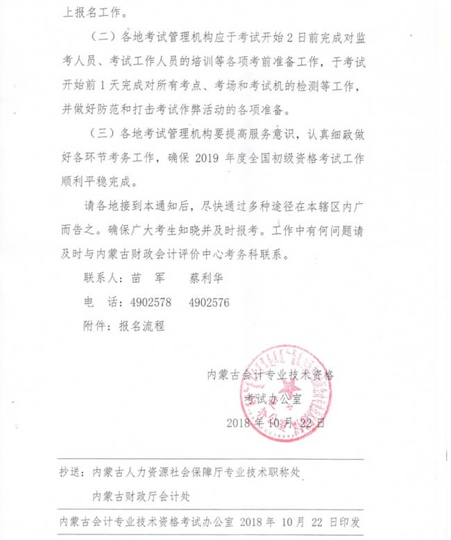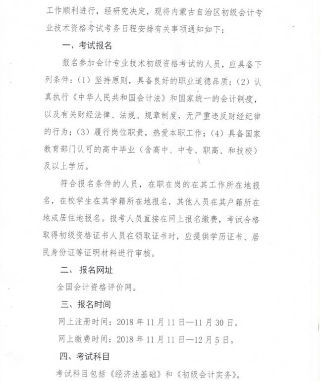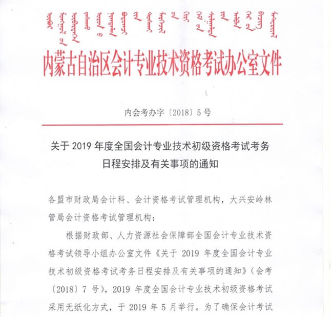 內(nèi)蒙古2019年初級會計師報名時間已經(jīng)確定:2018年11月11日-2018年11月30日,繳費時間:2018年11月11日-2018年12月5日。請參加2019年初級會計職稱考試的朋友在規(guī)定時間內(nèi)完成報名。