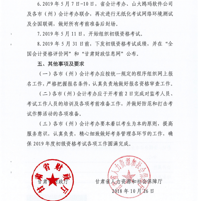 全國會計專業(yè)技術初級資格考試考務日程安排及有關事項的通知