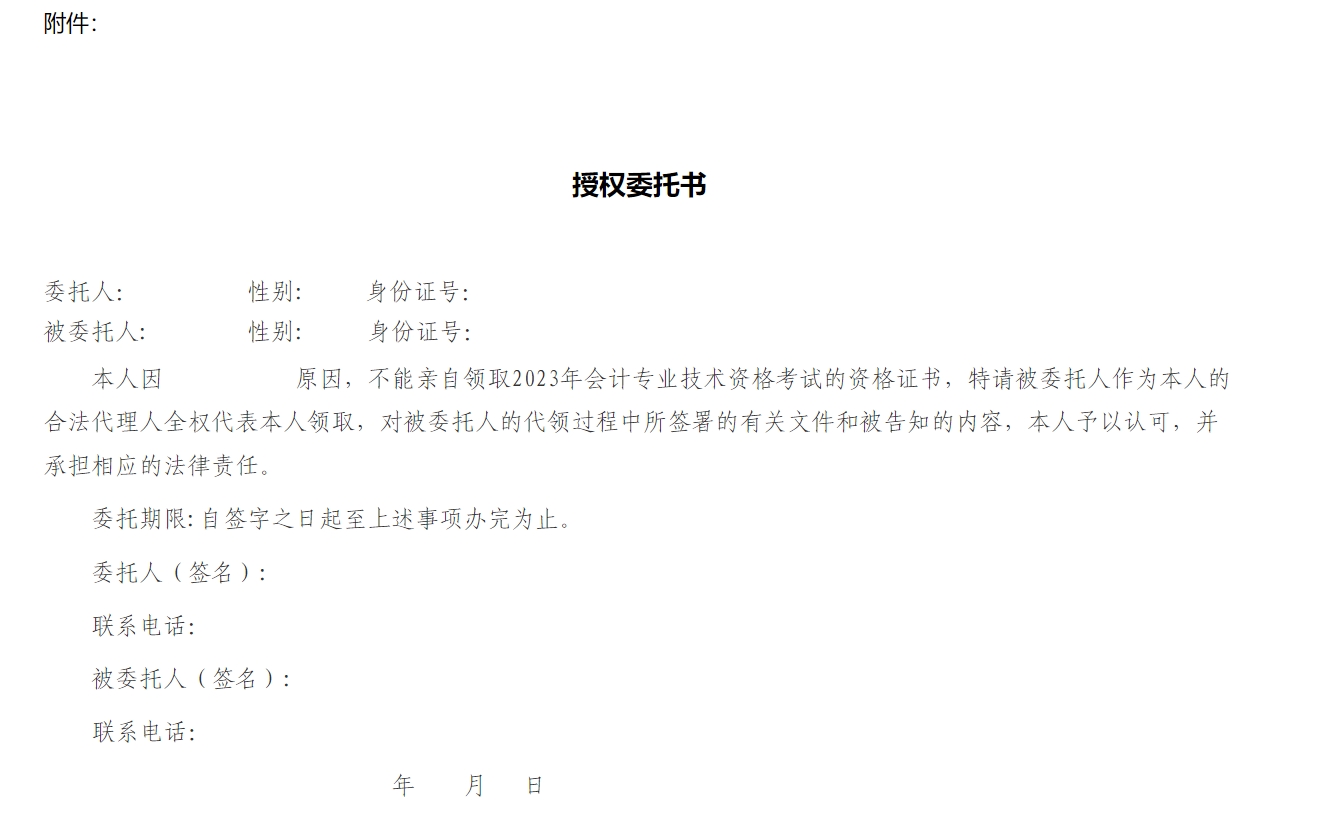 委托他人代領(lǐng)的,代領(lǐng)人須攜帶雙方居民身份證原件,并提供“委托人親筆簽名的《授權(quán)委托書》(見附件)”。