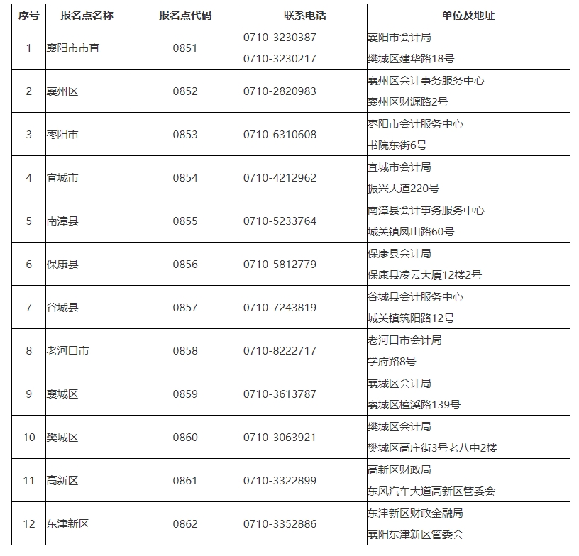 附件:襄陽市各縣市區(qū)會計管理機構(gòu)(報名點)代碼編號對照表