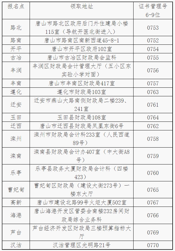 3、關于報名點查詢,考生登陸“全國會計資格評價網(wǎng)”,選擇網(wǎng)站首頁“證書查詢系統(tǒng)”,輸入個人身份信息,查詢個人證書信息,記下證書管理號碼6-9位,對照上表即可。