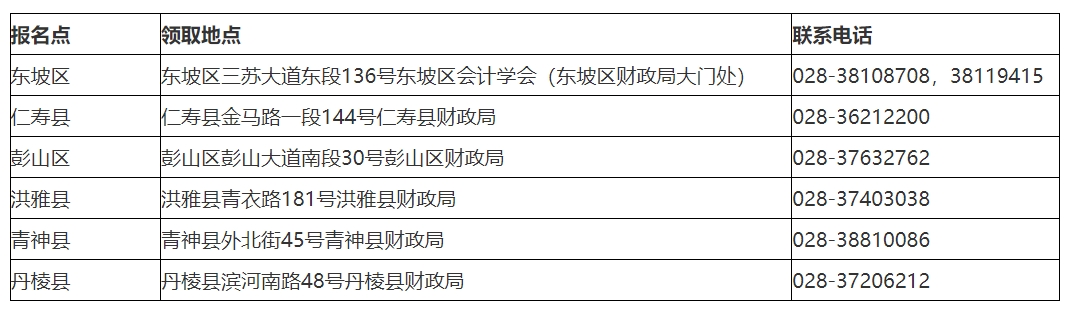 請(qǐng)考生到報(bào)名考點(diǎn)所在財(cái)政局領(lǐng)取證書,領(lǐng)證地點(diǎn)和聯(lián)系方式如下: