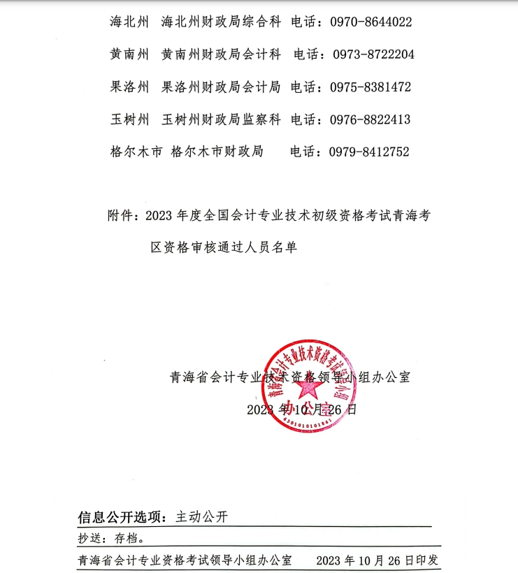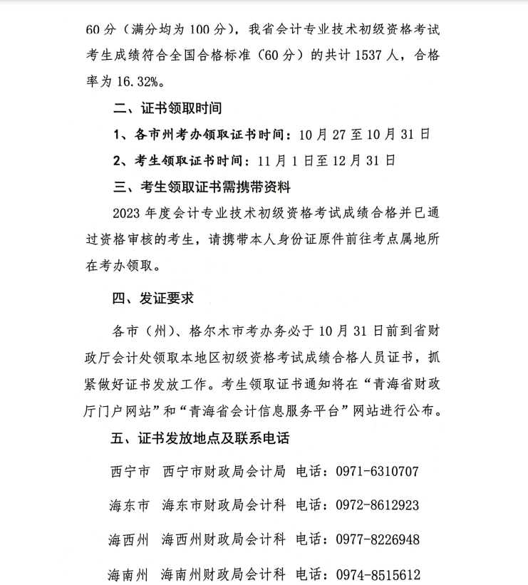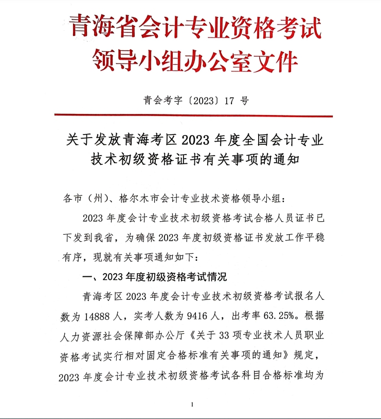 關于發(fā)放青海考區(qū)2023年度全國會計專業(yè)技術初級資格證書有關事項的通知.pdf