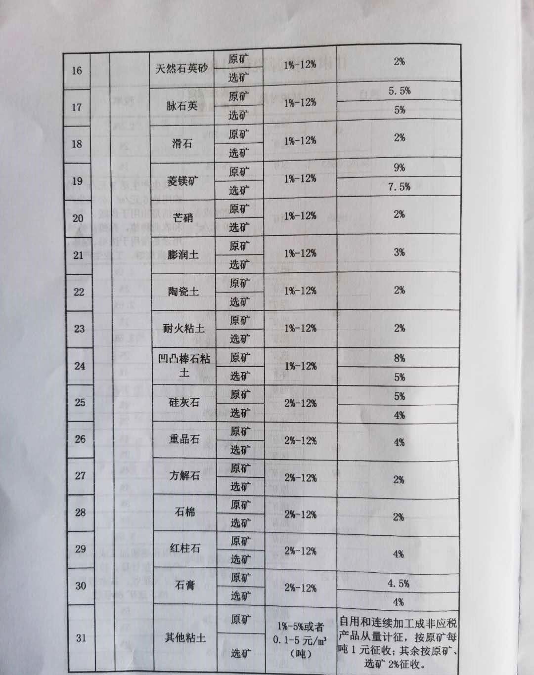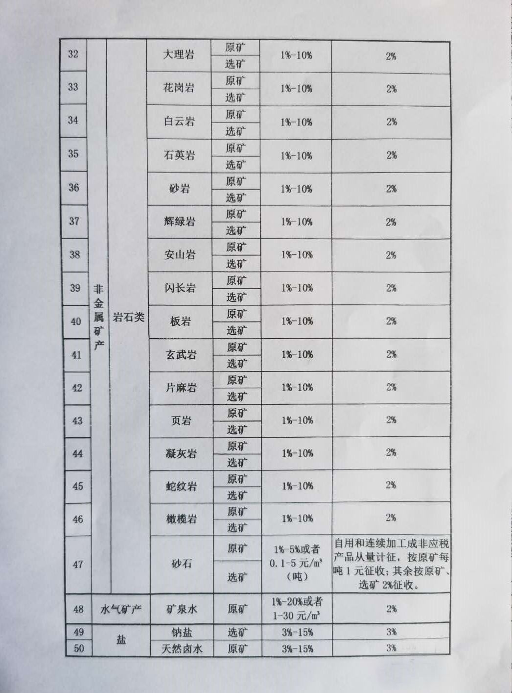 甘肅省人民代表大會常務(wù)委員會關(guān)于甘肅省資源稅適用稅率等有關(guān)事項的決定 (2020年7月31日省十三屆人大常委會第十八次會議通過) 為了加強資源管理,促進資源節(jié)約集約利用和生態(tài)環(huán)境保護,根據(jù)《中華人民共和國資源稅法》(以下簡稱資源稅法)的規(guī)定,結(jié)合本省實際,對資源稅適用稅率等有關(guān)事項作如下決定: 一、資源稅法規(guī)定實行幅度稅率的稅目,我省應(yīng)稅礦產(chǎn)品適用稅率,按照所附的《甘肅省資源稅稅目稅率表》執(zhí)行。對目前我省已探明儲量但尚未開采的礦產(chǎn)品,開采并生產(chǎn)經(jīng)營后,根據(jù)資源稅法所附的《資源稅稅目稅率表》所屬應(yīng)稅礦產(chǎn)品稅率幅度的最低稅率征收,待生產(chǎn)經(jīng)營穩(wěn)定后,再按程序提請省人大常委會決定適用稅率。 二、資源稅法規(guī)定可以選擇實行從價計征或者從量計征的稅目中,地熱實行從量計征,礦泉水、天然鹵水實行從價計征,石灰?guī)r、其他粘土、砂石實行從量計征和從價計征相結(jié)合的方式。 三、符合資源稅法第七條規(guī)定情形的,按照以下辦法減征或者免征資源稅: (一)納稅人開采或者生產(chǎn)應(yīng)稅礦產(chǎn)品過程中,因自然災(zāi)害或不可抗力造成意外事故,遭受的直接經(jīng)濟損失超過上年度企業(yè)主營業(yè)務(wù)收入50%的,自遭受重大損失次月起,連續(xù)12個月減征50%資源稅。 (二)納稅人開采銷售伴生礦,伴生礦與主礦產(chǎn)品銷售額分開核算的,對伴生礦暫不計征資源稅;沒有分開核算的,伴生礦按主礦產(chǎn)品的稅目和適用稅率計征資源稅。 (三)納稅人開采低品位礦,按其應(yīng)納稅額的50%減征資源稅。 (四)納稅人開采尾礦,免征資源稅。 符合上述規(guī)定的,由納稅人申報享受減征免征政策,《礦產(chǎn)資源儲量核實報告》、《采礦許可證》等相關(guān)資料留存?zhèn)洳椤?/p> 各級稅務(wù)機關(guān)與自然資源、應(yīng)急管理等部門建立工作協(xié)作機制。稅務(wù)機關(guān)在后續(xù)管理中,不能準確判定企業(yè)開采、銷售伴生礦、低品位礦、尾礦以及遭受自然災(zāi)害和意外事故的,可提請自然資源、應(yīng)急管理等部門出具意見。 四、本決定自2020年9月1日起施行。 附: 甘肅省資源稅稅目稅率表