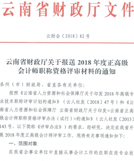 附件:云南省財(cái)政廳關(guān)于報(bào)送2018年度正高級(jí)會(huì)計(jì)師職稱(chēng)資格評(píng)審材料的通知